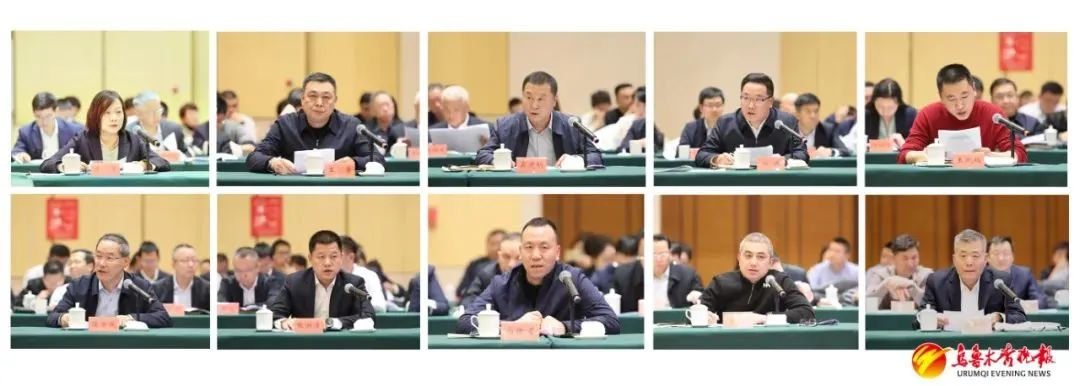 圖為:中建新疆建工(集團)有限公司新疆建工建科院董事長陳寧、中國石油天然氣股份有限公司烏魯木齊石化分公司總經(jīng)理王勇、新疆交通建設(shè)集團股份有限公司市政公司總經(jīng)理吳建明、烏魯木齊新生代企業(yè)家商會會長方鵬、新疆隆矩新材料有限公司董事長王凱瑞、新奇康藥業(yè)股份有限公司董事長陳金成、新疆華源實業(yè)(集團)有限公司副總裁張洪濤、新疆世紀中聯(lián)電器連鎖有限公司董事長馮世君、新疆絲綢之路山地度假區(qū)副總經(jīng)理黃河、烏魯木齊市招商大使陳少欽等10位代表發(fā)言。